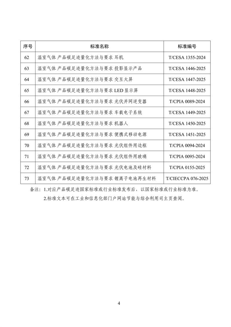 2月2日,工业和信息化部等四部门关于公布工业产品碳足迹核算规则团体标准推荐清单(第三批)的通告。通告指出,共计73项工业产品上榜,其中涉及光伏产品4项: